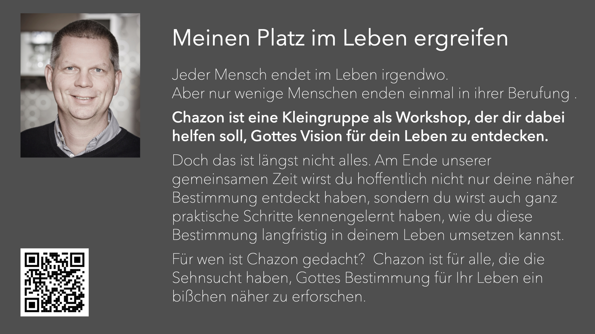 Chazon ist für alle, die die Sehnsucht haben, Gottes Bestimmung für Ihr Leben ein bißchen näher zu erforschen. Wir sind davon überzeugt, dass du in jedem Fall davon profitieren kannst.